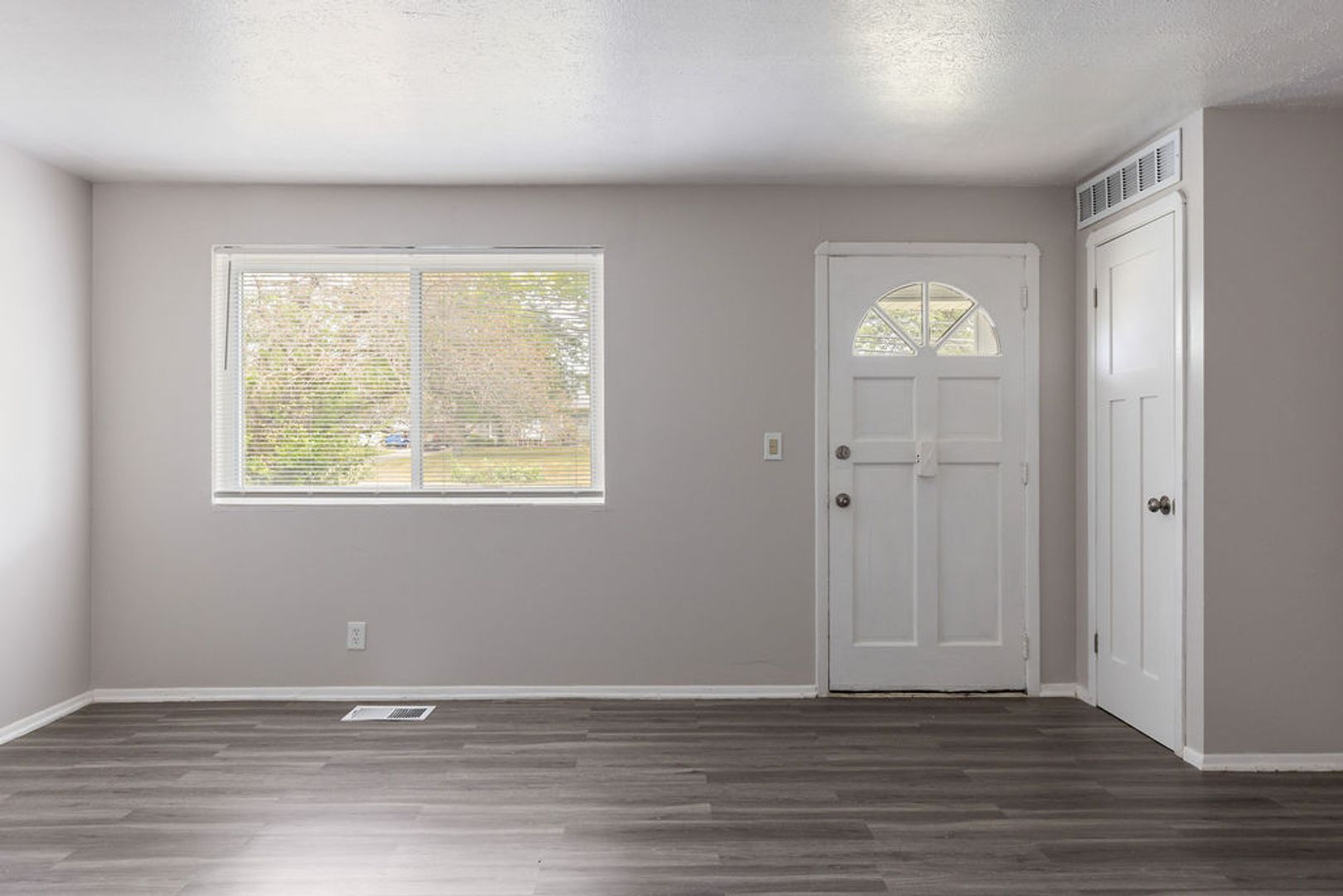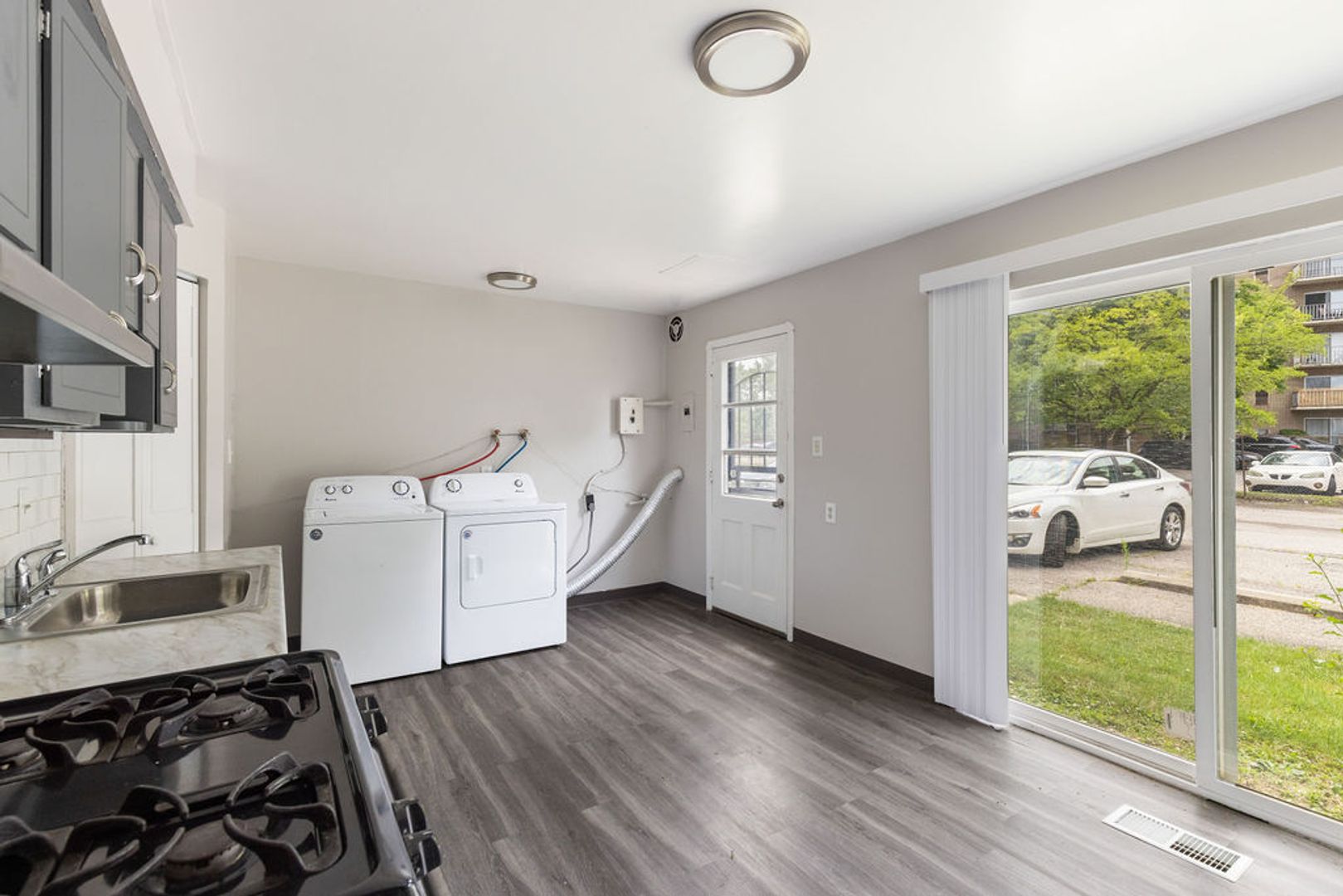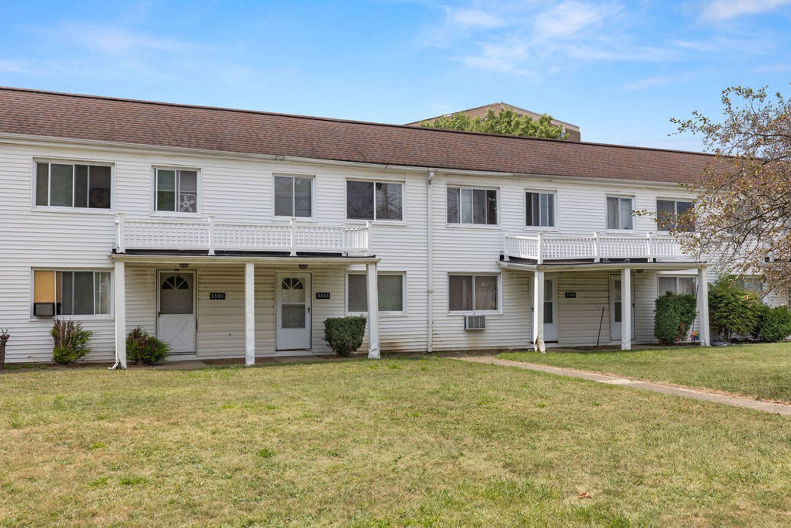 Perkins Gardens Apartments offers comfortable living in Bedford Heights with these three-bedroom, one-bathroom townhouses. Each unit has its own front and back entrances, providing added privacy and ease of access. The townhouses are set on a well-maintained lawn with parking available just behind the units. These townhouses provide a practical and comfortable living space, ideal for anyone looking to enjoy a quiet neighborhood with easy access to local amenities and transportation.
